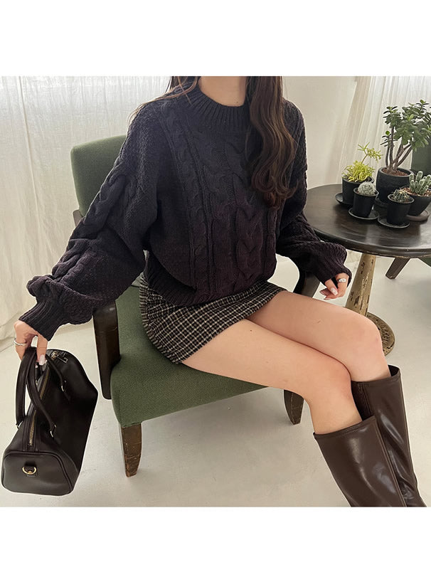 ▼ Cable knit mall knit tops