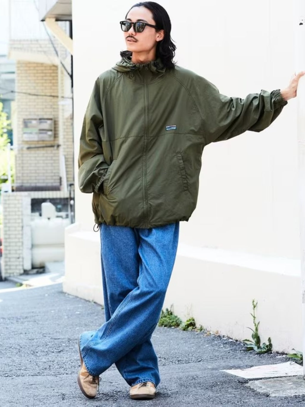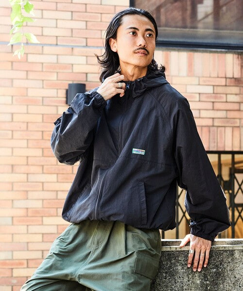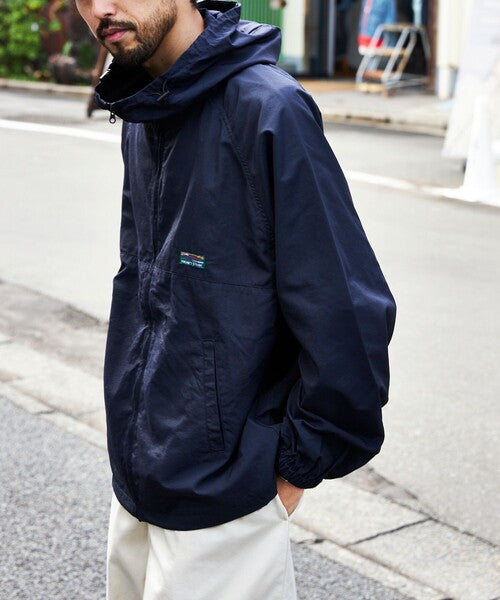 ▼ big silhouette nylon hoodie jacket/zip blouson