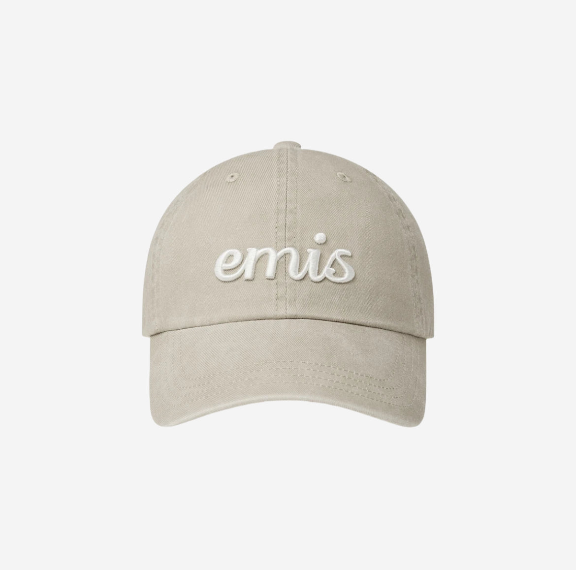 日常使用的簡單設計的棒球帽。適中的體積感,易於佩戴,前端的emis 標誌成為點綴。