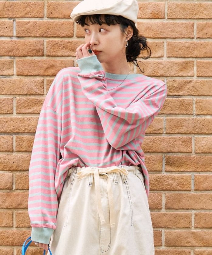 以色彩為主角的大廓形條紋Tee。