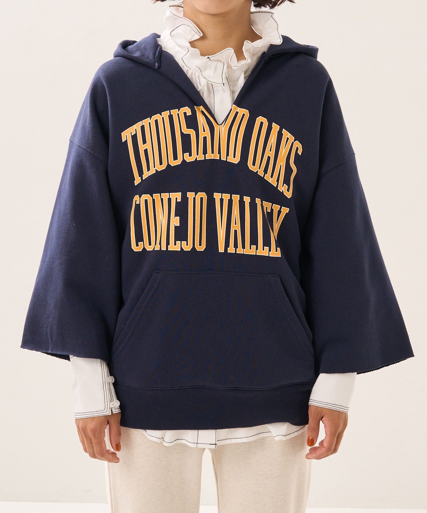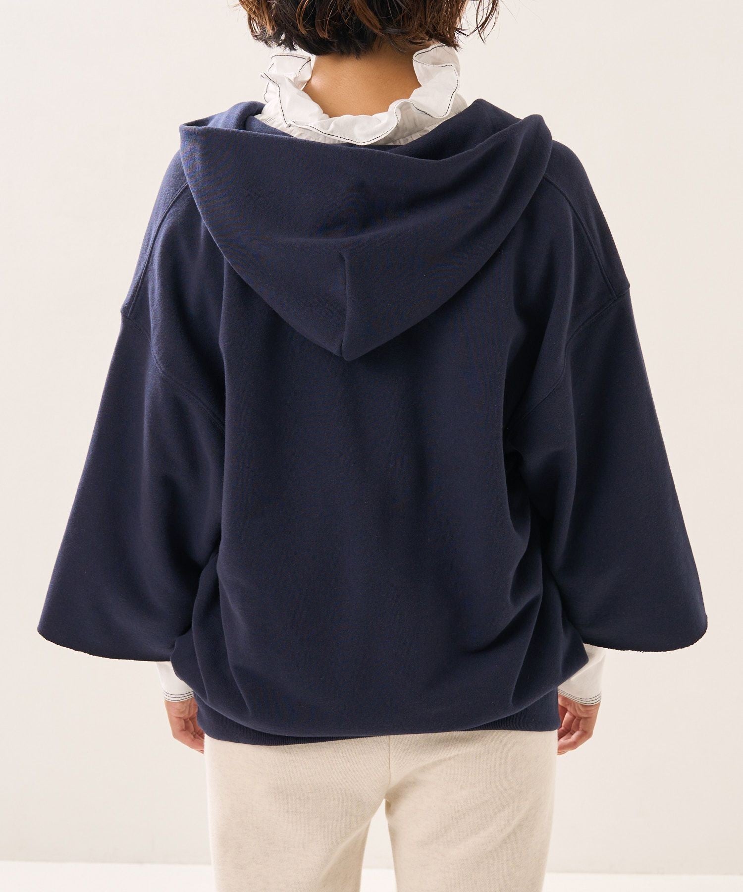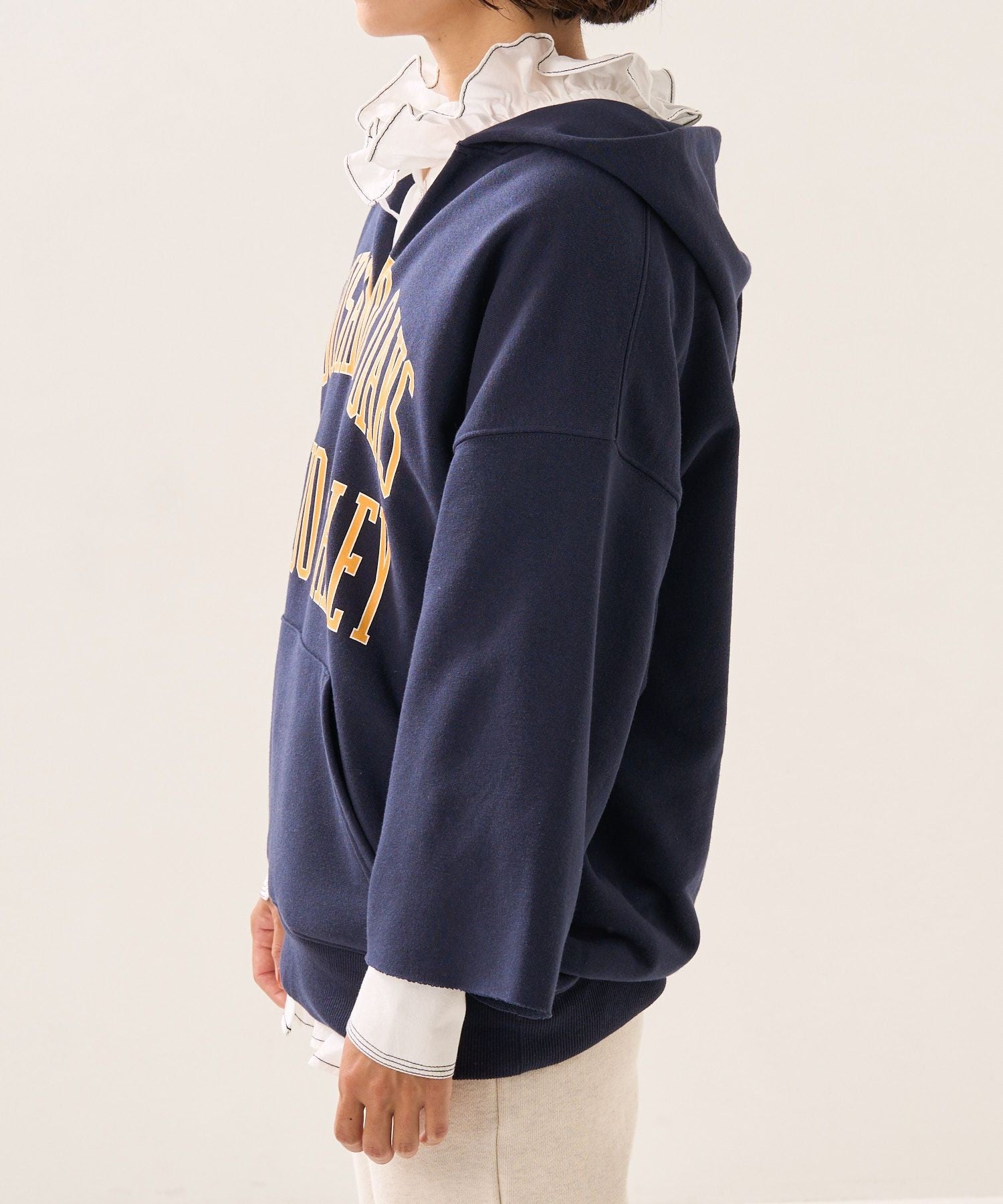 ●以復古的剪裁運動衫為形象,領口為開叉,袖口為剪裁設計連帽衫。