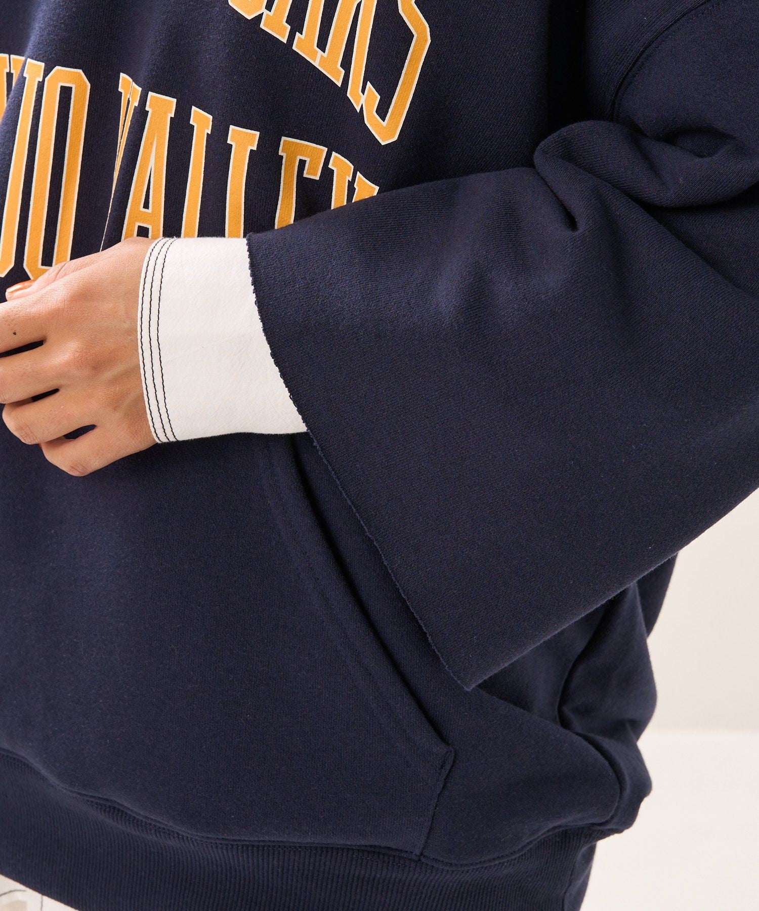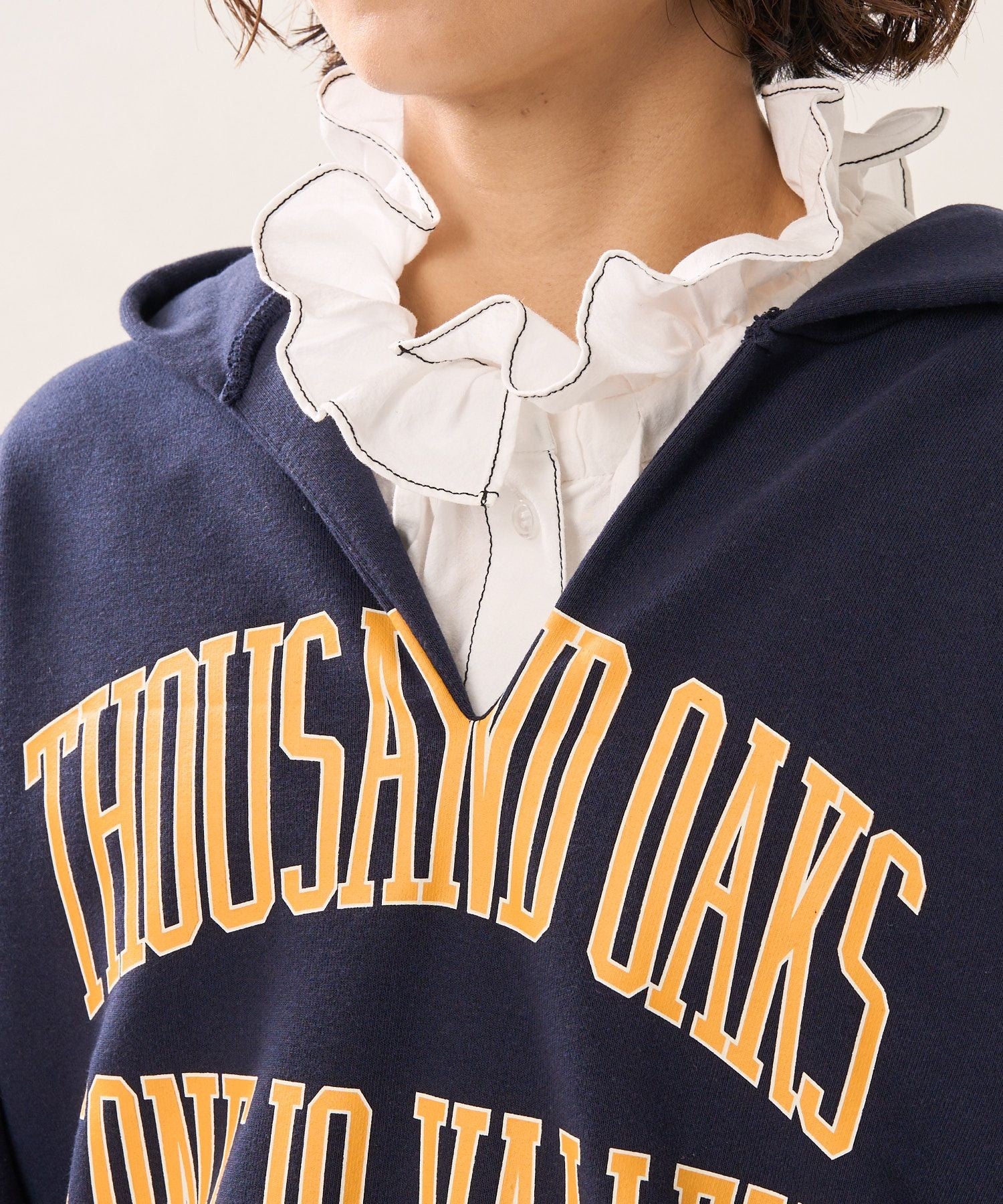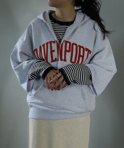 ●以復古的剪裁運動衫為形象,領口為開叉,袖口為剪裁設計連帽衫。