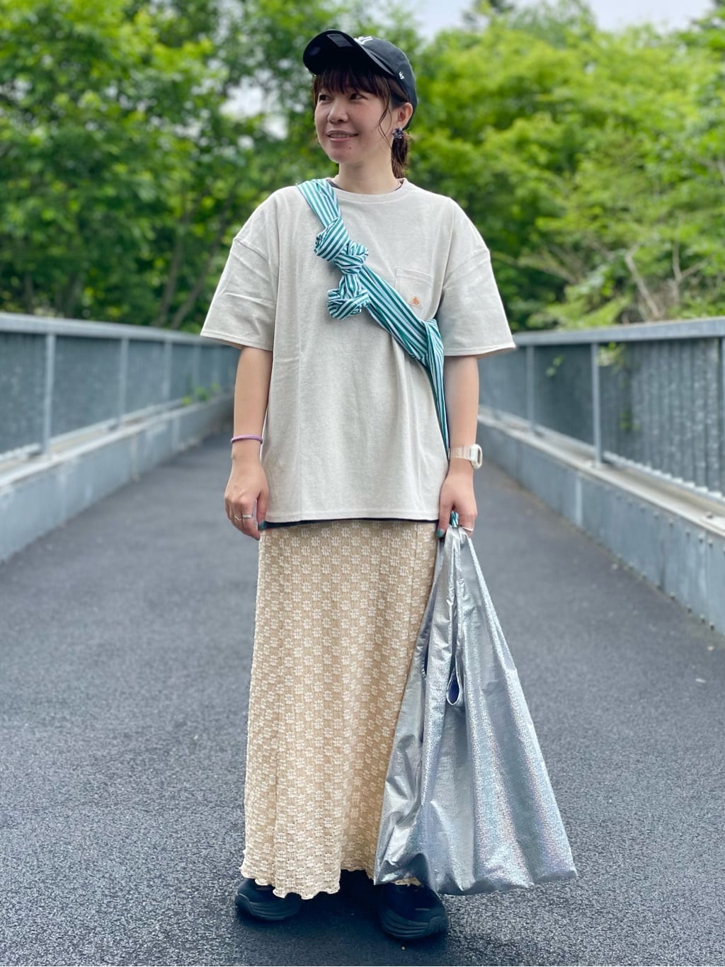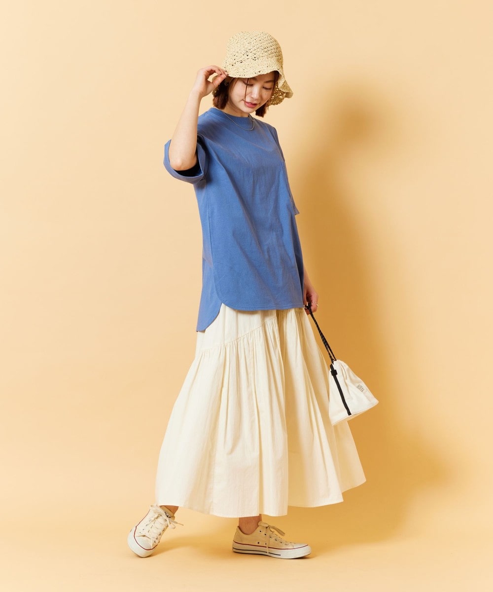 圓形下擺,前後不同,看起來很有風格。